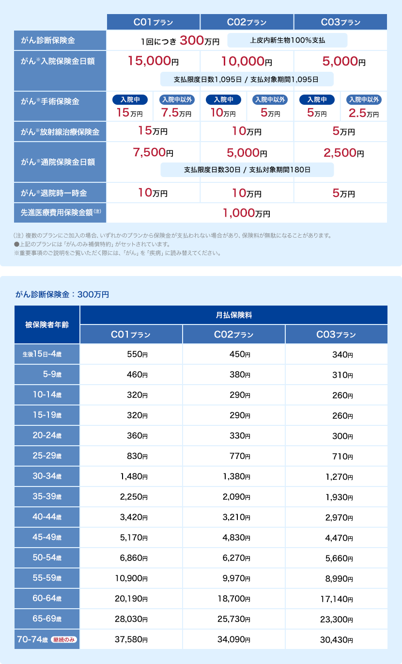 保険料は5歳きざみの年齢区分ごとに設定(例えば40歳~44歳が同じ保険料となります。)しており、保険期間開始時点の満年齢により保険料が決まります。したがって、更新の際に年齢区分が変わる場合(例:30歳・35歳・40歳・45歳等)には、保険料が変わります。